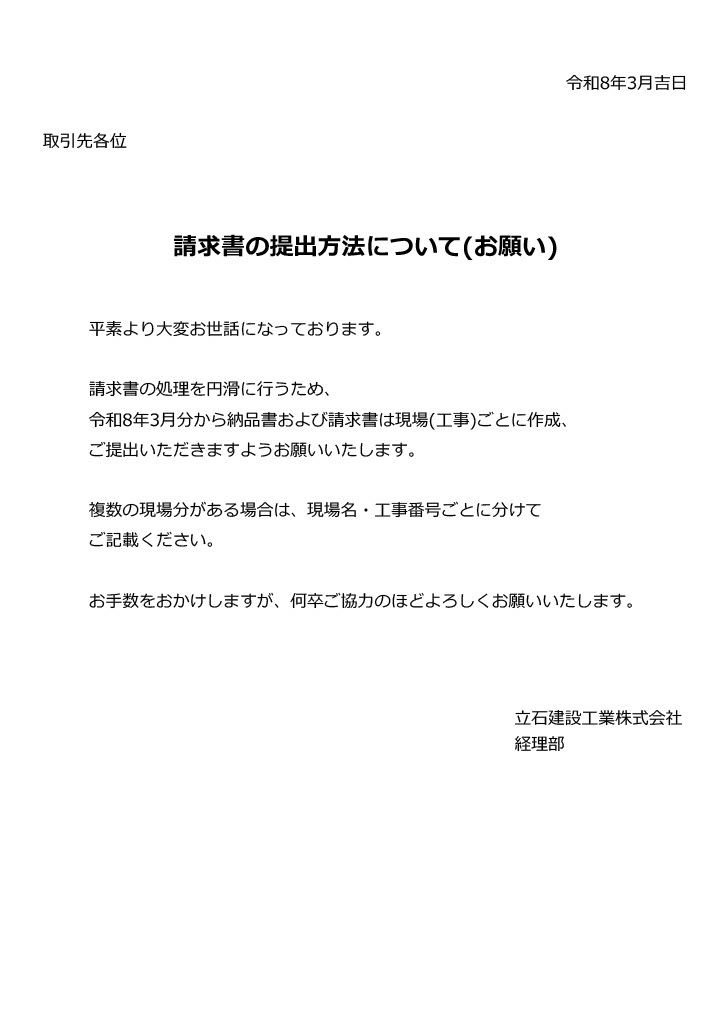 請求書の提出について(お願い)