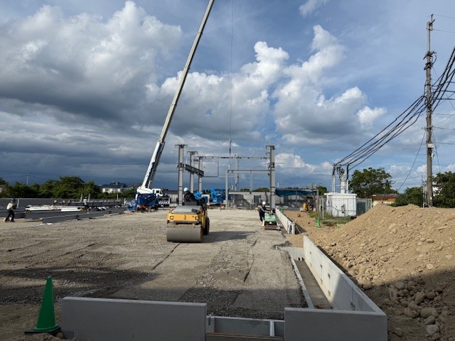 中津市 某工場増築工事において基礎工事が完了いたしました。 順調に進捗しております。